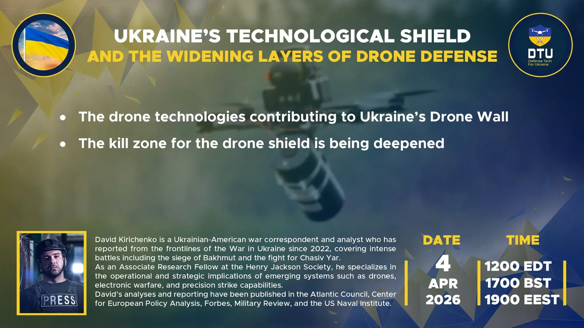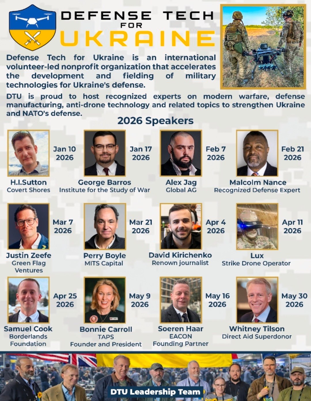 The weekly DTU drone and C-UAS (Counter-Unmanned Aerial Systems) sync calls provide updates from our projects and from the battlefield, often feature expert guests, and