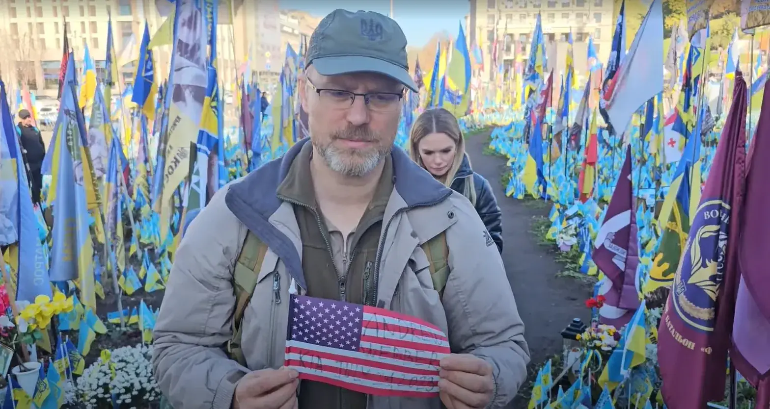 Carl Larson of DTU pays respect to the flags of fallen heroes in Kyiv. Click for video.