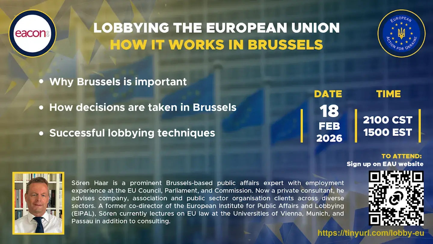 EAU regularly hosts interactive webinars that focus on the practical application of public affairs and civic engagement for Ukraine. These sessions are designed to move beyond theory and provide volunteers with actionable strategies.